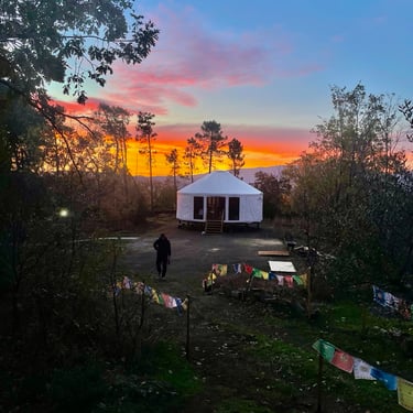 La magia sucede en plena naturaleza, en la Sierra de Gredos (a solo 100 km de Madrid), bajo el cobijo de una Yurta Celta de madera: un espacio sagrado donde apagar el ruido mental y conectar con el cuerpo y la energía del bosque.